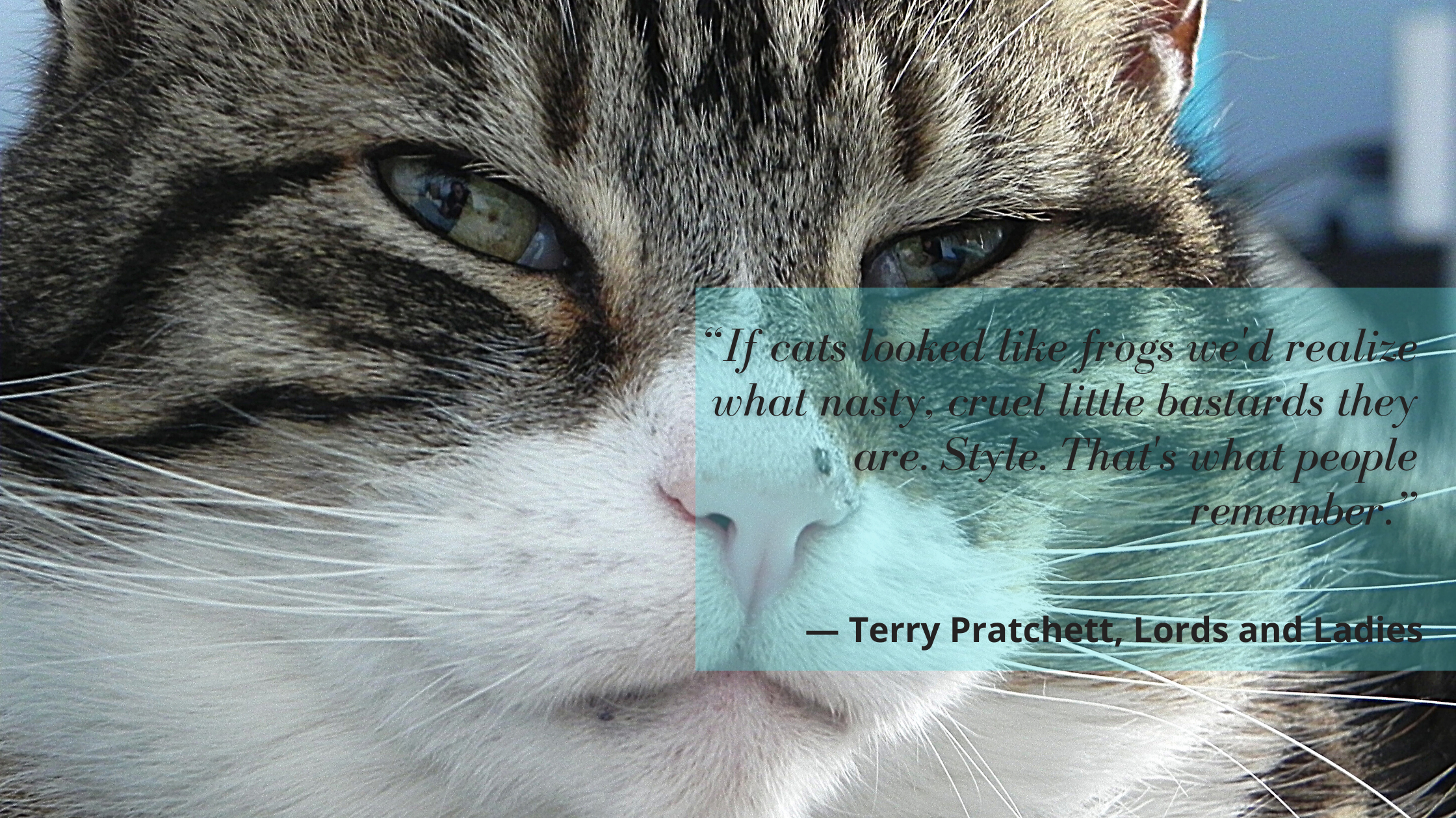 Just a few of my favourite cat-related quotes from my favourite author. The late, great Sir Terry Pratchett.